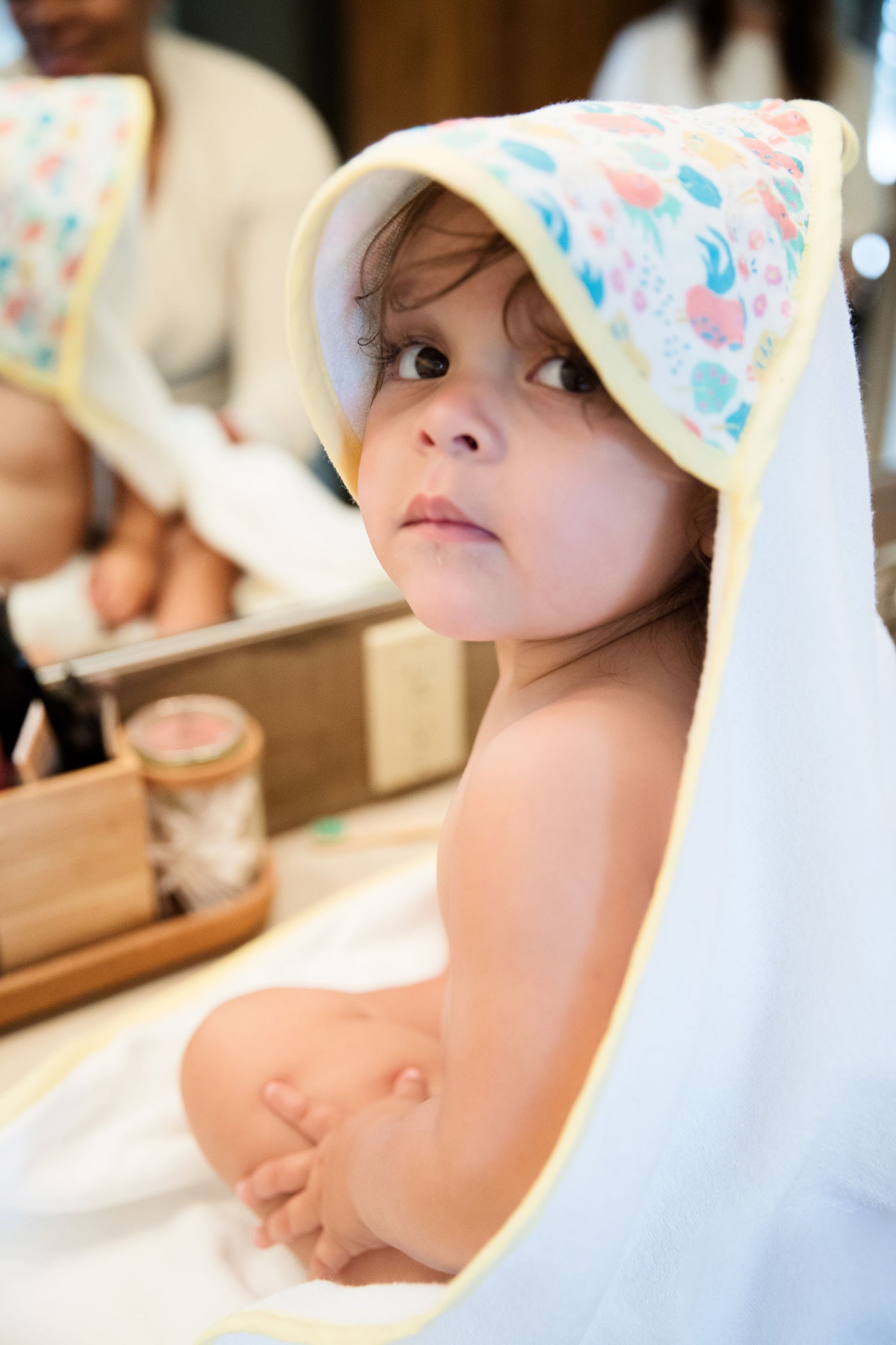 I received this adorable towel as a gift. And ever so grateful for it. The print is cheerful and the colors are bright! And the fabric is incredibly soft and perfect for my baby’s skin. It’s winter here so we’ve been using it as a bath towel, but cannot wait to use it poolside! Five “mommy”stars. —Melanie